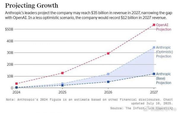 Anthropic 的增长很大程度上要归功于其在编程领域的强大实力。他们的编程助手 Claude Code 正在飞速占领市场。