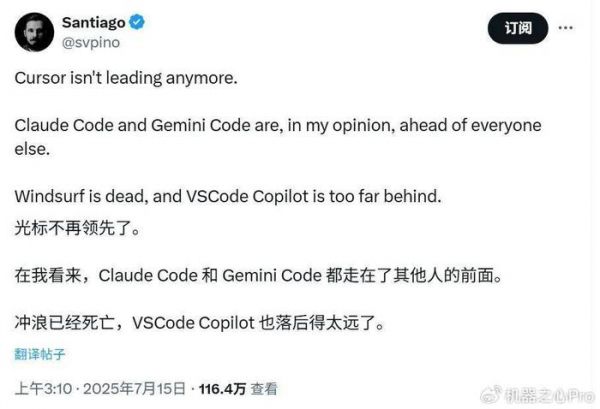 而 Windsurf 最近的收购案闹得沸沸扬扬,似乎也前途未卜。详见机器之心报道:《Windsurf交易内幕疯传:24亿美元被瓜分,背刺数百员工?》《突发|动荡72小时后,华人团队Cognition收购Windsurf剩余团队》