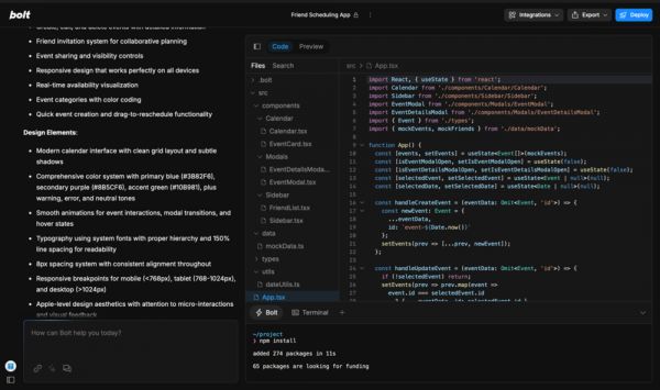 Bolt.new为用户提供了功能齐全的后台逻辑、数据库架构,甚至API接口。专业开发中可以用Bolt.new快速启动项目,然后导出到GitHub或下载后用Cursor继续开发,还能回到Bolt.new添加新功能。