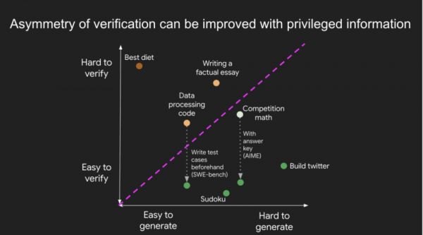 关于验证不对称性最重要的一个认知是:对任务进行一些前期研究可以改善其不对称性。例如,对于一道竞赛数学题,如果你手头有答案,那么检查所有提交的最终答案都是小事一桩。