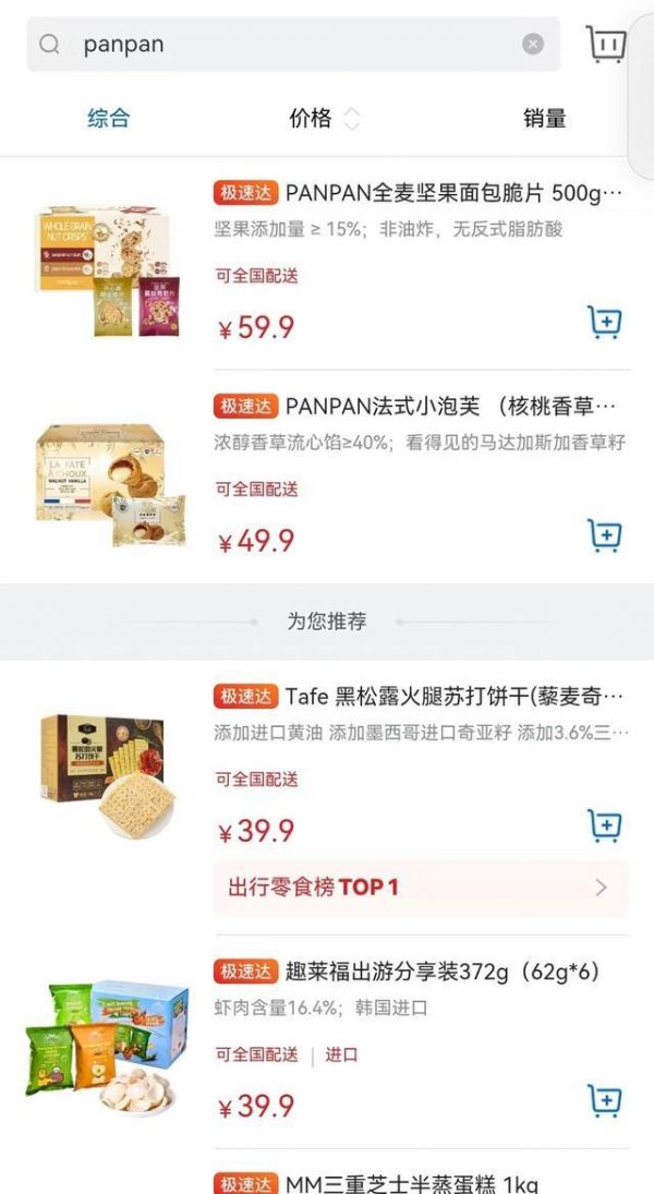 盼盼品牌在山姆线上渠道以“PANPAN”的面貌呈现。
