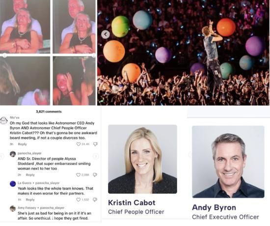 事件的起因是昨晚酷玩乐队在波士顿的演唱会,kiss cam捕捉到了一对举止亲密的伴侣。