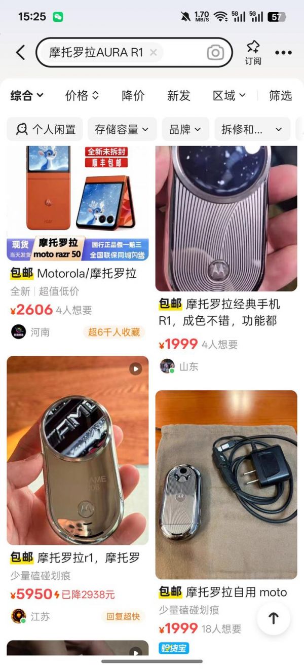 直到今天,功能完备的摩托罗拉AURA R1,在二手平台售价大多仍在1000元以上,部分品质较好的机型售价高达3000元左右。