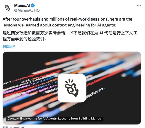经过四次重构和数百万真实交互,他在文中坦诚地总结了团队在构建 Manus 过程中积累的经验教训。内容既有实操干货,也不乏反思,对业内同行与普通用户来说,都不失为一份值得一读的参考材料。