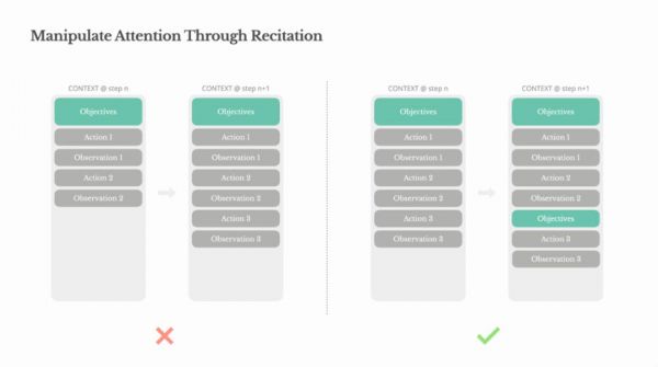 Manus 中的典型任务平均需要大约 50 次工具调用。这是一个很长的循环——由于 Manus 依赖 LLM 进行决策,它很容易偏离主题或忘记早期目标,尤其是在长上下文或复杂任务中。
