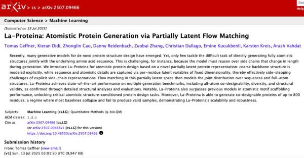 相关研究成果以「La-Proteina: Atomistic Protein Generation via Partially Latent Flow Matching」为题,发表在 arXiv。