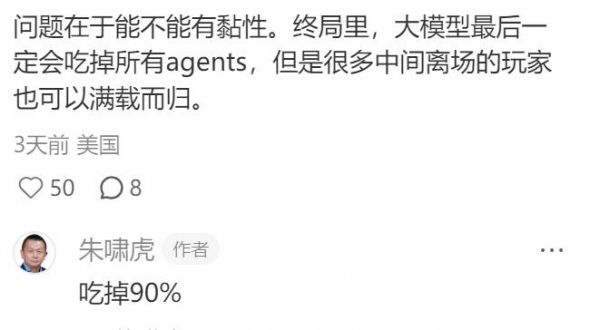 朱啸虎说“90%的Agent市场会被吃掉”,但他所在的金沙江创投也参与了AI Agent项目融资,只是相比于通用Agent,他更看好能真正跑出效率和实际落地的产品。