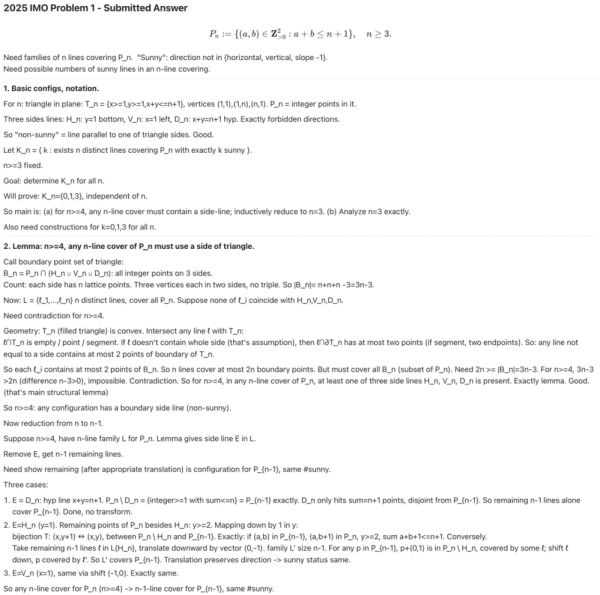 IMO问题正是这一挑战的完美体现:证明过程长达数页,专家需要花费数小时来评分。