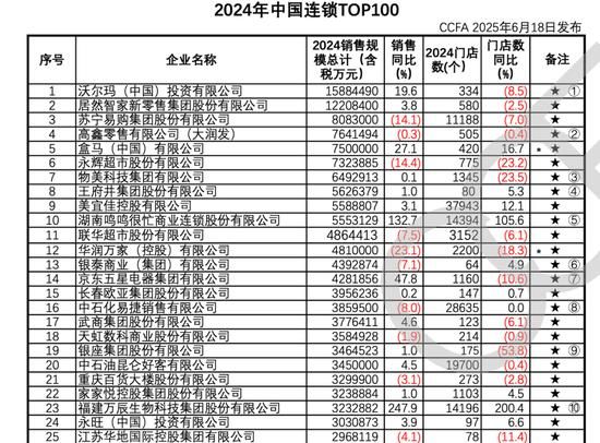 根据中国连锁经营协会今年6月公布的《2024年中国连锁TOP100》,华润万家2024年销售规模481亿元,同比下降了23.1%,门店数量下降18.3%到2200家。