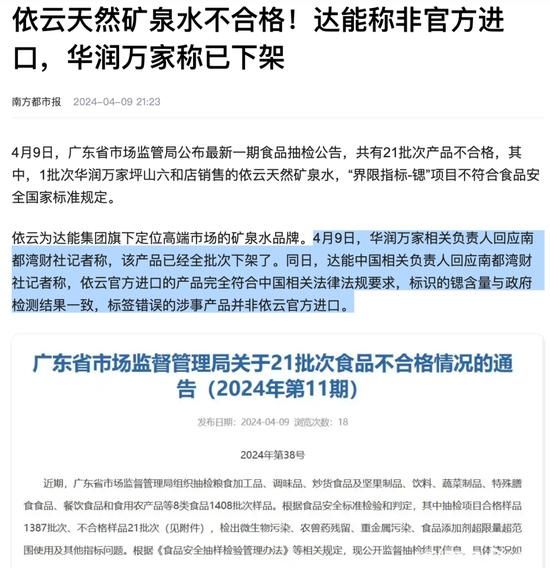 离谱的是,依云官方回应,涉事的华润万家产品,并非依云官方进口。
