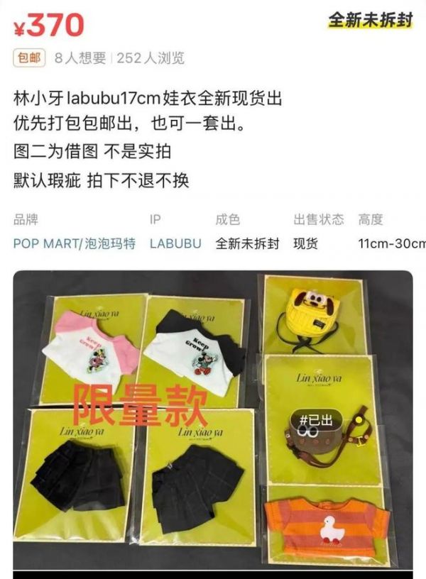 “原价是买不到Labubu的,你花大几百在平台上抢到了二手盲盒,带着‘娃’出去的时候发现别人家的‘娃’都有衣服穿,肯定自己也想下单一件。”潮玩爱好者周雨告诉记者。