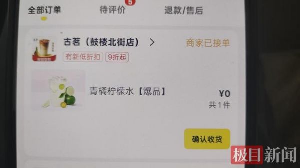 张先生下单的“0元购”奶茶张先生告诉极目新闻记者,可能是“0元购”券发得少了,去取餐时明显快很多,“上周六下单的古茗长虹路民发店,直接被店员告知订单太多做不了了,今天去鼓楼北街的古茗、爷爷不泡茶现到现做,很顺利就取到了。”