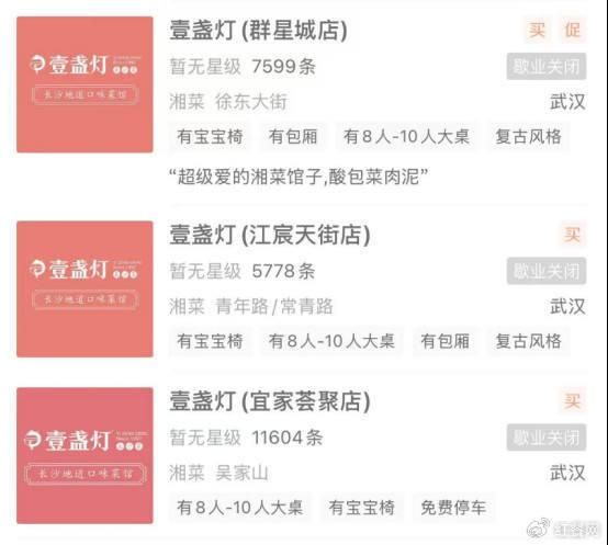 大众点评数据则显示,壹盏灯此前在武汉地区有6家门店,目前光谷店、梦时代店、经开永旺店仍在正常经营,与品牌公众号数据一致;而位于群星城、江宸天街及宜家聚会的3家门店目前为“歇业关闭”状态。此外,壹盏灯位于深圳龙华壹方城的门店也显示“歇业关闭”状态。