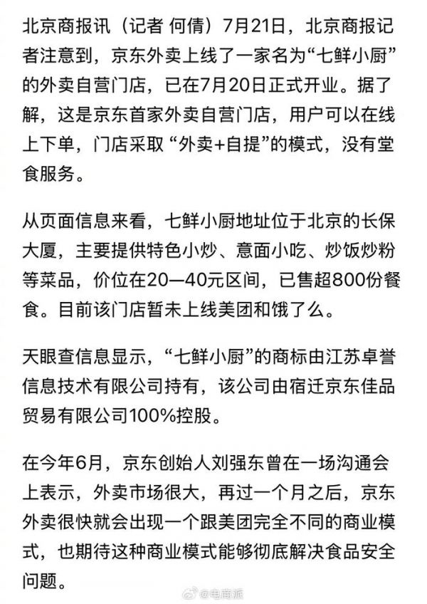 #京东上线首家外卖自营门店# 京东外卖新模式上线,首家自营外卖门店开业了,没有堂食。