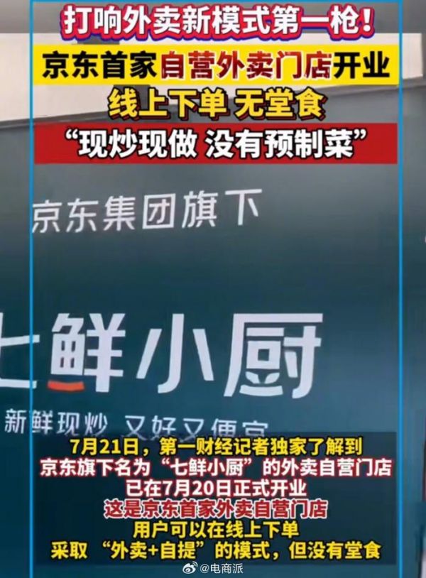 京东首家自营外卖门店七鲜小厨开业,采用外卖加自提模式