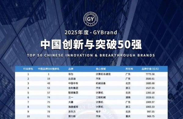 从榜单呈现结果来看,头部企业的创新实力也得到有力印证。华为以 7775.58 亿元的品牌价值连续四年蝉联榜首。2024 年,华为发布的全新原生鸿蒙操作系统,作为中国首个全栈自研操作系统,打破国外技术垄断,带动整个国产软件生态迈向新高度;Mate70 芯片实现 100%国产化,更是彰显其在芯片领域突破封锁的强大实力。比亚迪以 3500.61 亿元品牌价值位居第二,在新能源汽车领域,刀片电池、CTB 车身一体化技术等创新成果,重塑全球高端汽车发展格局。这些企业在各自领域凭借硬核创新成果,坐稳榜单前排,也侧面反映出榜单评选并非无的放矢。