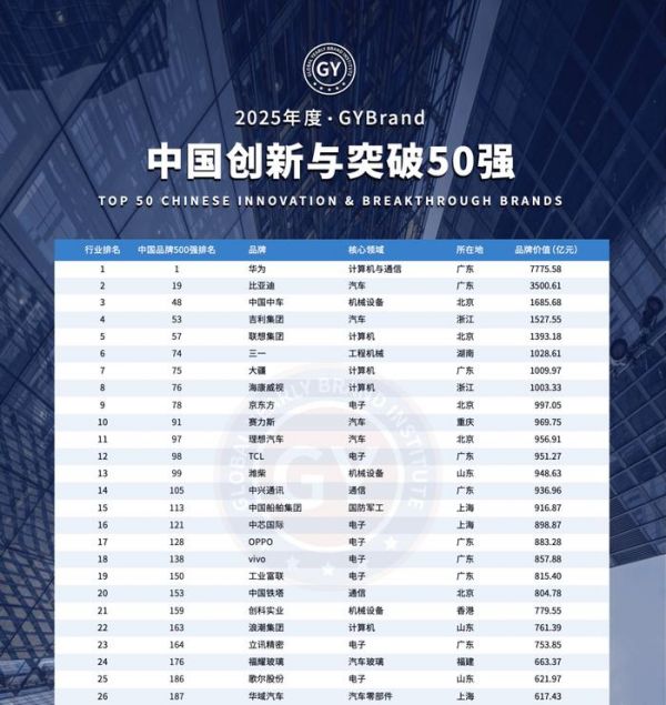近日,GYBrand 全球品牌研究院发布的“2025 中国创新与突破 50 强榜单”引发广泛关注,而小米未入选该榜单更是掀起舆论波澜。那么,这份榜单究竟是否权威?小米的缺席又透露了哪些信息?