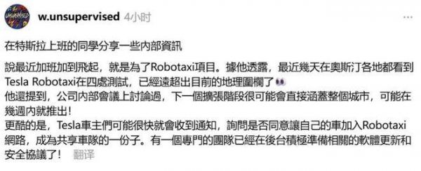 ▲网传员工透露无人车服务将覆盖奥斯汀该用户还透露了一则重要消息,私家车即将加入Robotaxi网络!特斯拉已成立专门团队,相关的软件更新已经在准备中。