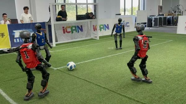 程昊认为,机器人足球要想战胜人类,还需要进行多次迭代。“过去这一年,机器人在运动方面的迭代非常快,未来说不定可以复制梅西、C罗的踢球动作。”
