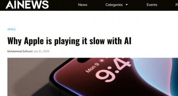 【环球网科技综合报道】7月22日消息,据外媒AINEWS报道称,在人工智能浪潮汹涌澎湃的当下,苹果却以一种相对“缓慢”的节奏推进其 AI 战略,这一策略引发了诸多关注与讨论。