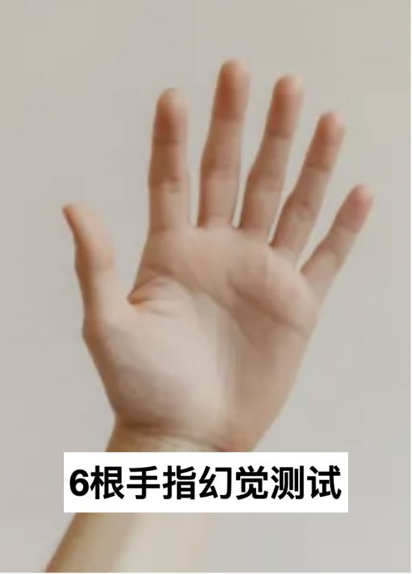 图片下方的“6根手指幻觉测试”文字显然是在制造错觉,但手掌本身并没有多出第六根手指。