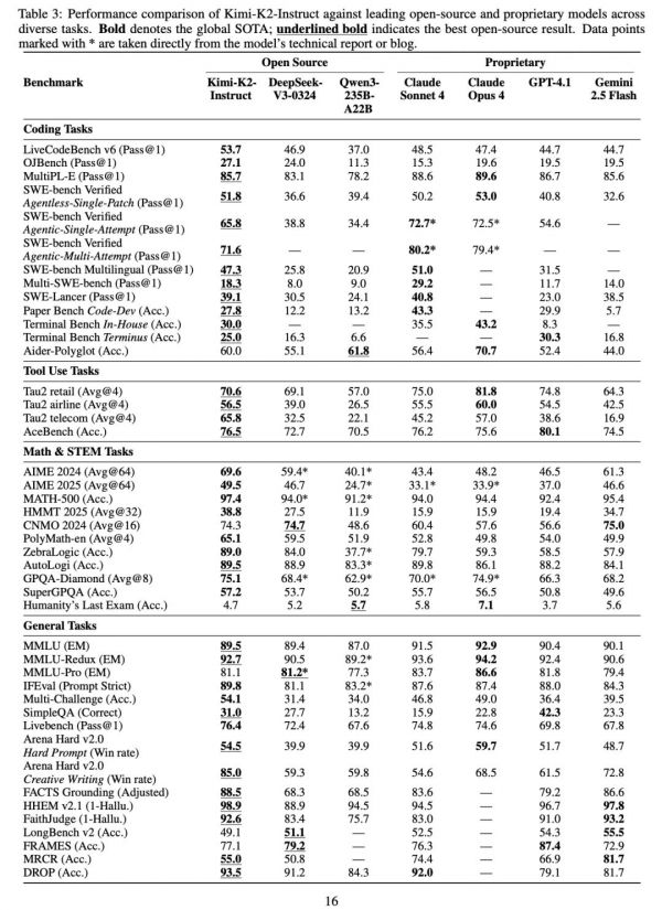 就在大家还在讨论这些差异、参数规模、以及模型路线时,Kimi 今天又放出了一份干货:Kimi K2 的技术报告正式发布。