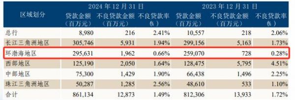 这或许也是环渤海地区贷款规模位居全行第二,但不良率最低的原因。