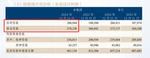 原因可能与贷款担保方式有关,信用和类信用方式合计为5810.64亿元,占比近70%。由于无抵质押等增信手段,信用和类信用贷款本身就会要求更高的平均利率,导致净息差看上去尚可接受。