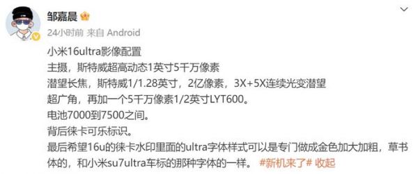 那么问题来了,大家对小米16 Ultra有什么期待吗?一起来说说看吧。
