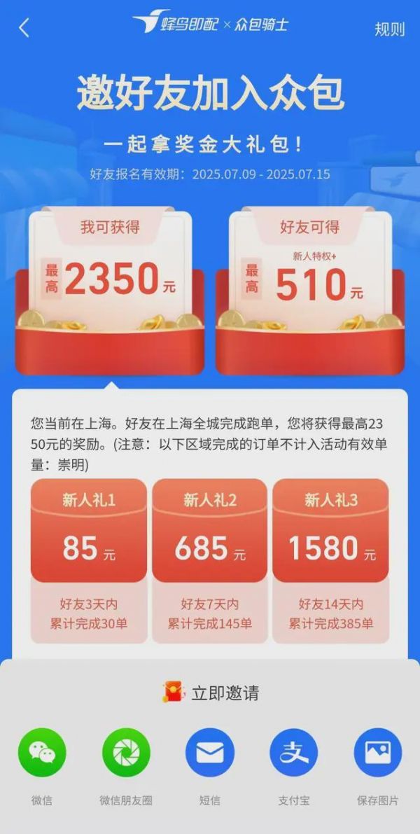两个平台在上海招募众包骑手的对比,左为饿了么,右为美团。