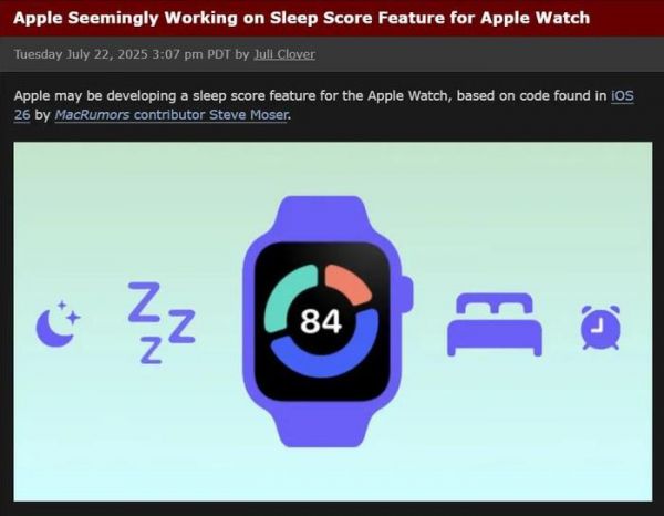 此外,据外媒MacRumors报道,在iOS 26代码中还发现了一张名为“Watch Focus Score”的图片,暗示苹果正在为Apple Watch开发“睡眠评分”功能。