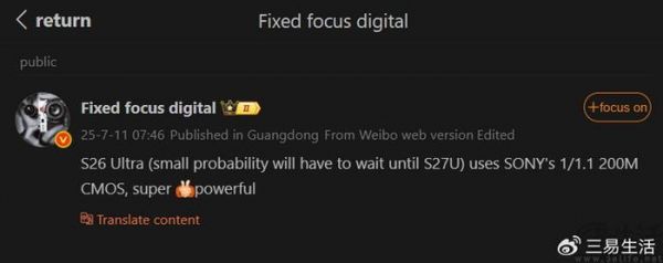 相比之下,索尼的新款1英寸CMOS情况则要特殊一些。因为目前的爆料显示,它并非大家熟悉的5000万像素设计,而是可能会具备2亿的超高像素。并且这款CMOS可能是索尼特供三星的型号,或者至少会由三星手机独占一段时间。很显然,它最大的可能性就是被用在Galaxy S26 Ultra上,从而接替三星已经用了三年没换代的HP2主摄。