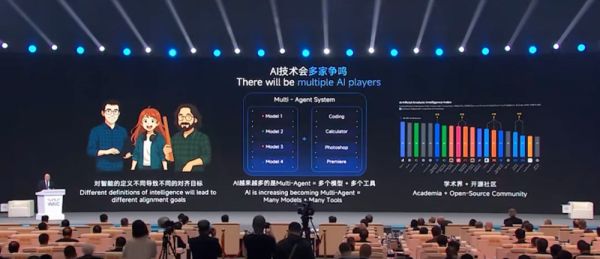 其次,现在越来越多的系统是由多个模型构成的多智能体架构,不再依赖某一个单独的大模型。这些系统整合多个模型和工具,在协同工作中展现出更高的智能和解决复杂问题的能力。这意味着单个模型的优势在系统中会被削弱,小公司也能参与竞争。