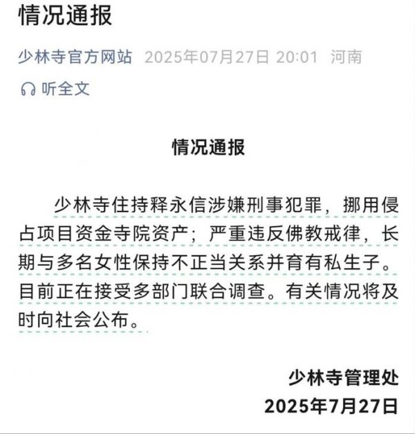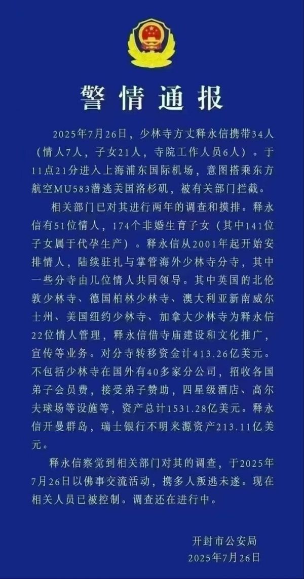 哪怕后来少林寺自己也发了通报,承认方丈确实“出事了”,正在接受调查。