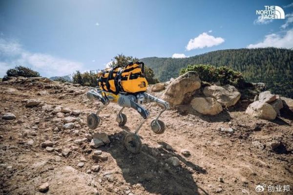 在平均海拔四千米以上的四姑娘山,一只机器狗踏着碎石路缓缓前行,为徒步者运送装备物资。这一幕,真实发生在The North Face今年5月的徒步挑战活动现场。