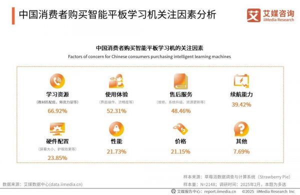 艾媒咨询的一项调研显示,66.92%的消费者将「学习资源」列为购买首要因素,远超硬件配置(22.1%)和价格(18.3%)的因素。