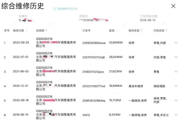 图/4S店维保记录示例,来源/互联网 新能源观截图