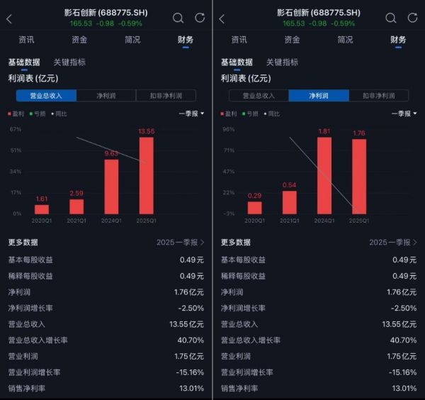 2025年一季报显示,影石营收13.55亿元,同比增长40.70%;归母净利润1.76亿元,同比下降2.50%。另外,营业利润增长率同比下降15.16%,这与市场竞争加剧、研发和营销投入增加不无关系。