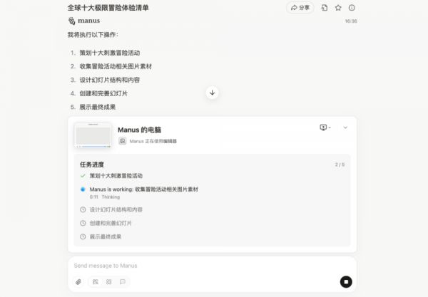 比如一个看似微不足道的设计细节——Manus在执行任务时,通常会给出一个预估时长。