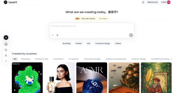 面向不同行业语境的定位差异也体现在Agent打招呼的Solgan上,比如,通用型Agent更强调“我能为你做什么”,相比之下,Lovart则直接表示“我们今天在创造什么”,这是一个明确面向设计师的产品态度和场景锚点。