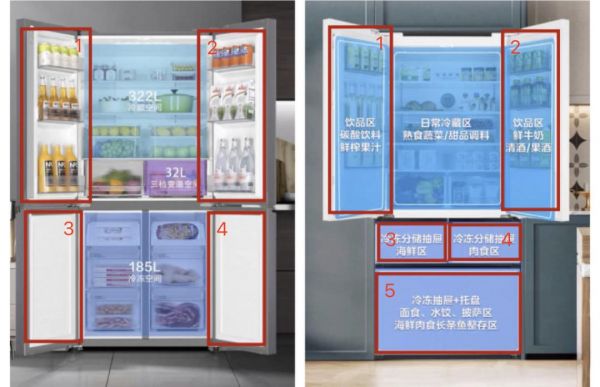 当冰箱的门再多一些,功能区则更加丰富,开门方式也就五花八门起来。