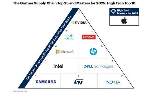 国际权威研究机构Gartner日前发布2025年度全球供应链高科技类排名,联想集团凭借卓越的创新实力与运营韧性,跻身高科技行业供应链全球第三,与人工智能领域领军者英伟达(NVIDIA)、网络技术巨头思科(Cisco)等全球顶尖科技企业并驾齐驱。
