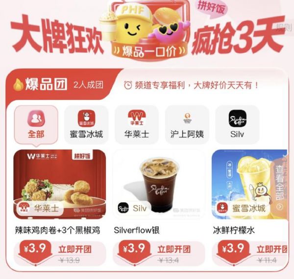 尤其是很多餐品/饮品,单点一份再加上配送费可能就超出了用户的心理价位,但通过拼好饭就可以用很划算的价格到手,享受到同样甚至更好的美食体验。这就能让价格敏感型消费者更愿意下单。