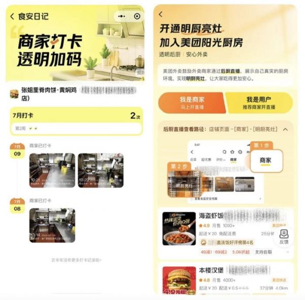 今年2月以来,已经有11.7万家商户在美团开通了“明厨亮灶”视频直播,现在,很多拼好饭商家也加入到了视频直播中,有的小餐馆每天午晚高峰准时开播,炒菜、装盒全程透明。接下来,美团将推动至少20万家拼好饭商家加入到“食安日记”“明厨亮灶”等实况展示的打卡中,通过合规、透明的方式,增进消费者信任,促进单量上涨。