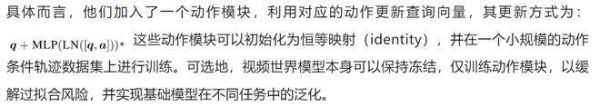 在预训练的视频世界模型基础上,本文提出了一种简单的适配方法,用于将预测第 t+1 帧的过程与当前动作 a_t 相结合。