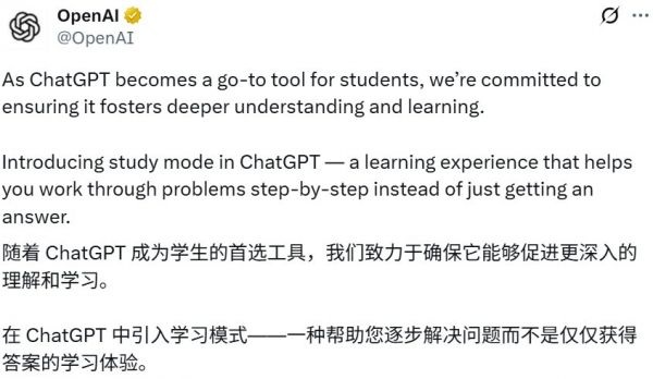 网址: OpenAI推出学习模式,AI教师真来了? http://www.xishuta.cn/newsview139654.html