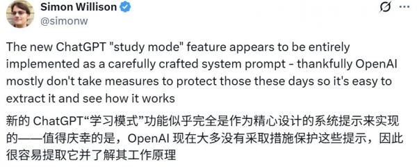 https://simonwillison.net/2025/Jul/29/openai-introducing-study-mode/
