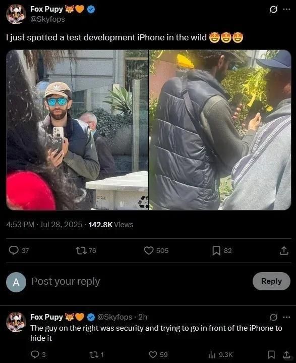 相关消息传出后,很快就被彭博社记者Mark Gurman转发了,并表示该网友拍摄到的iPhone 17 Pro“看起来属实”。