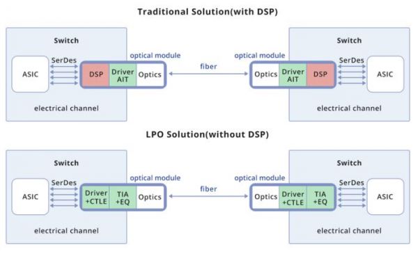 例如早在1995年就被广泛使用的可插拔光模块(根据设计的不同,可区分为DPO和LPO),就是数据中心的宠儿。但由于这种模块被安装在PCB边缘,ASIC则在封装基底上,这就让PIC/EIC与ASIC芯片之间拥有了较远的距离,而信号损耗随着距离的增长而变得更为明显。此外,这些模块的体积较大、互连密度低、功耗较大,随着使用的增多,会给系统带来很大的功耗负担。