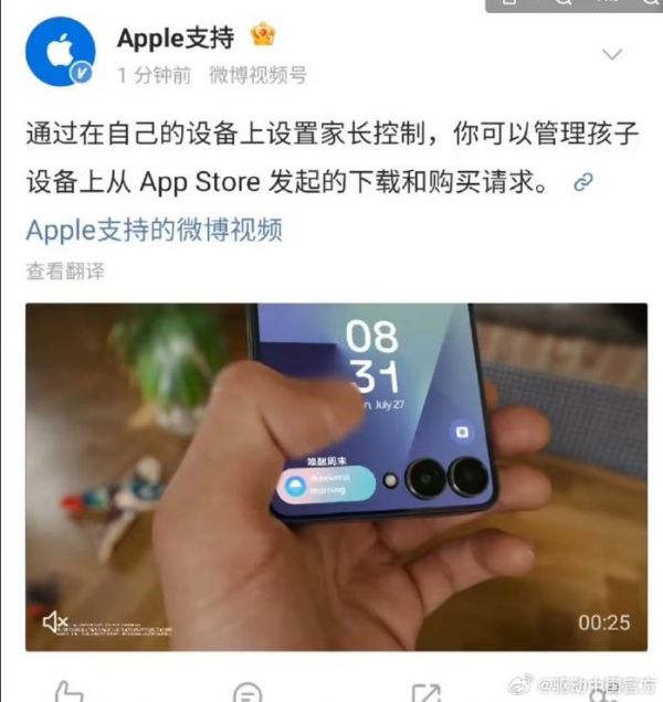 苹果回应支持账号误发三星广告,正与微博沟通调查